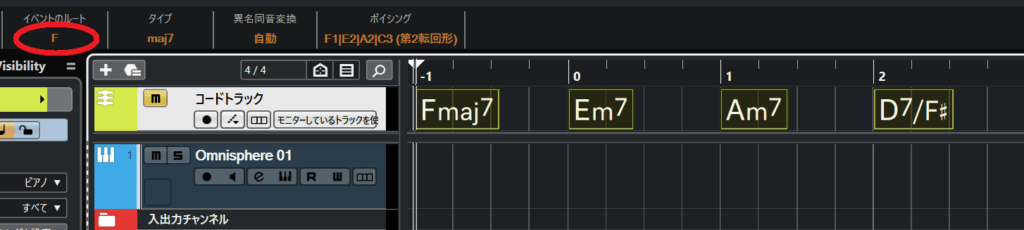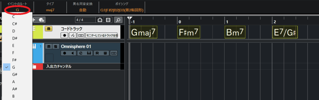 すぐ上のバーにある『イベントのルート』のルート音をクリックします。(ここでは「G」)